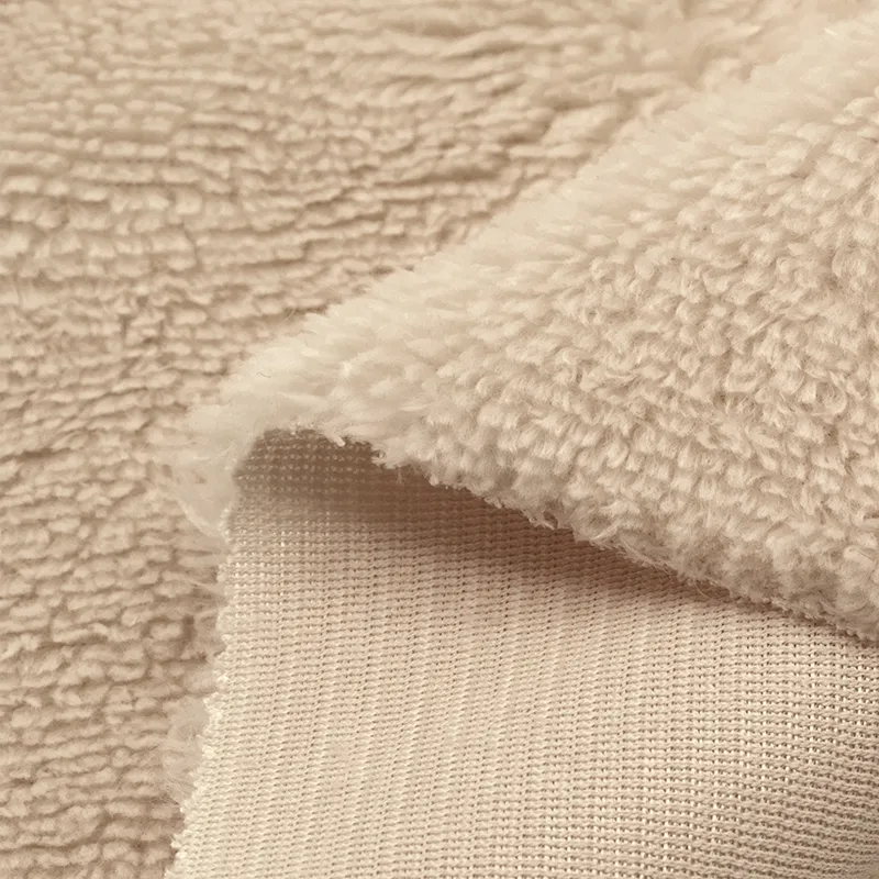 Light brown Faux rabbit fur fabric is irresistibly soft and silky, offering a luxurious alternative to real fur. It captures the elegant look and touch of rabbit fur with a refined, natural sheen.